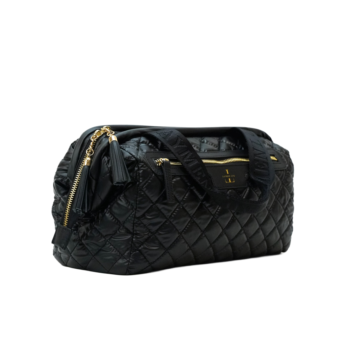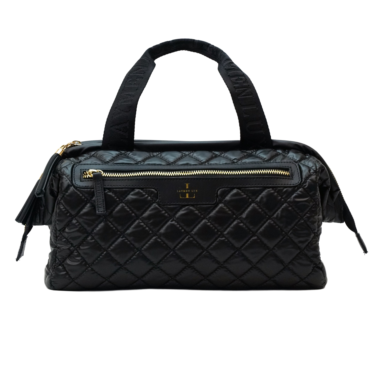Designed as a toiletry bag for a quick weekend getaway, yet chic enough for the office. A multi-purpose and extremely versatile bowler-style bag that you can throw all of your makeup and essentials in, and hit the road! The inside is made of water resistant material, making it easy to wipe clean.